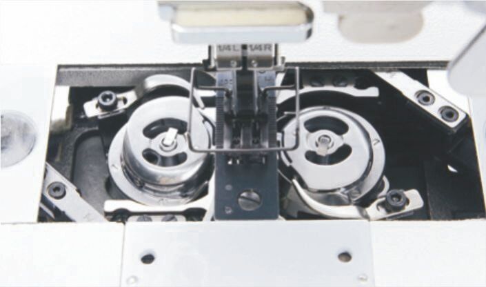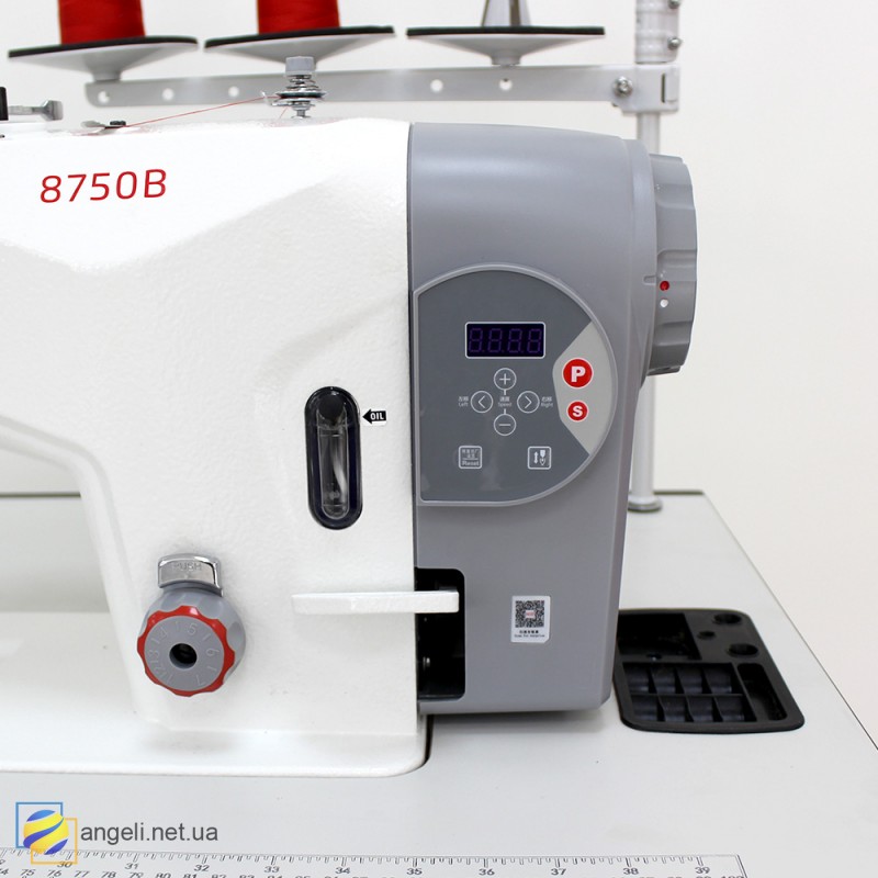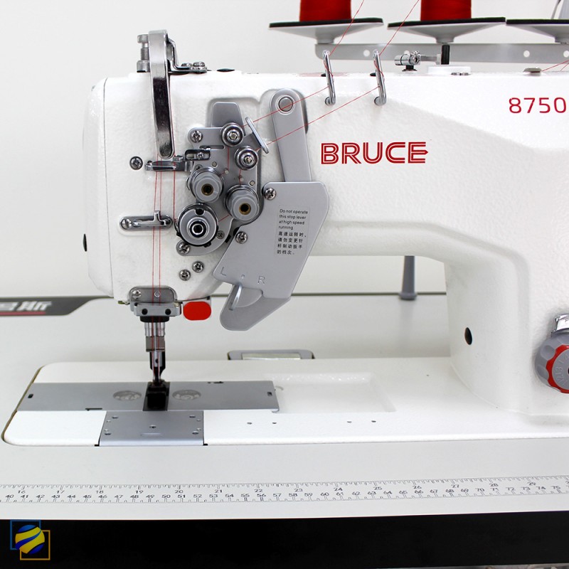 BRUCE BRC-8750B-005C - промислова 2-голкова швейна машина човникового стібка з відключенням голок та вбудованим серводвигуном, зі збільшеними човниками, для середніх та важких материалів.