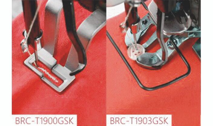 BRUCE BRC-T1900GSK — промышленная электронная закрепочная машина с рабочим полем 40×30 мм. Также машина может быть перенастроена для пришивания плоских пуговиц.
