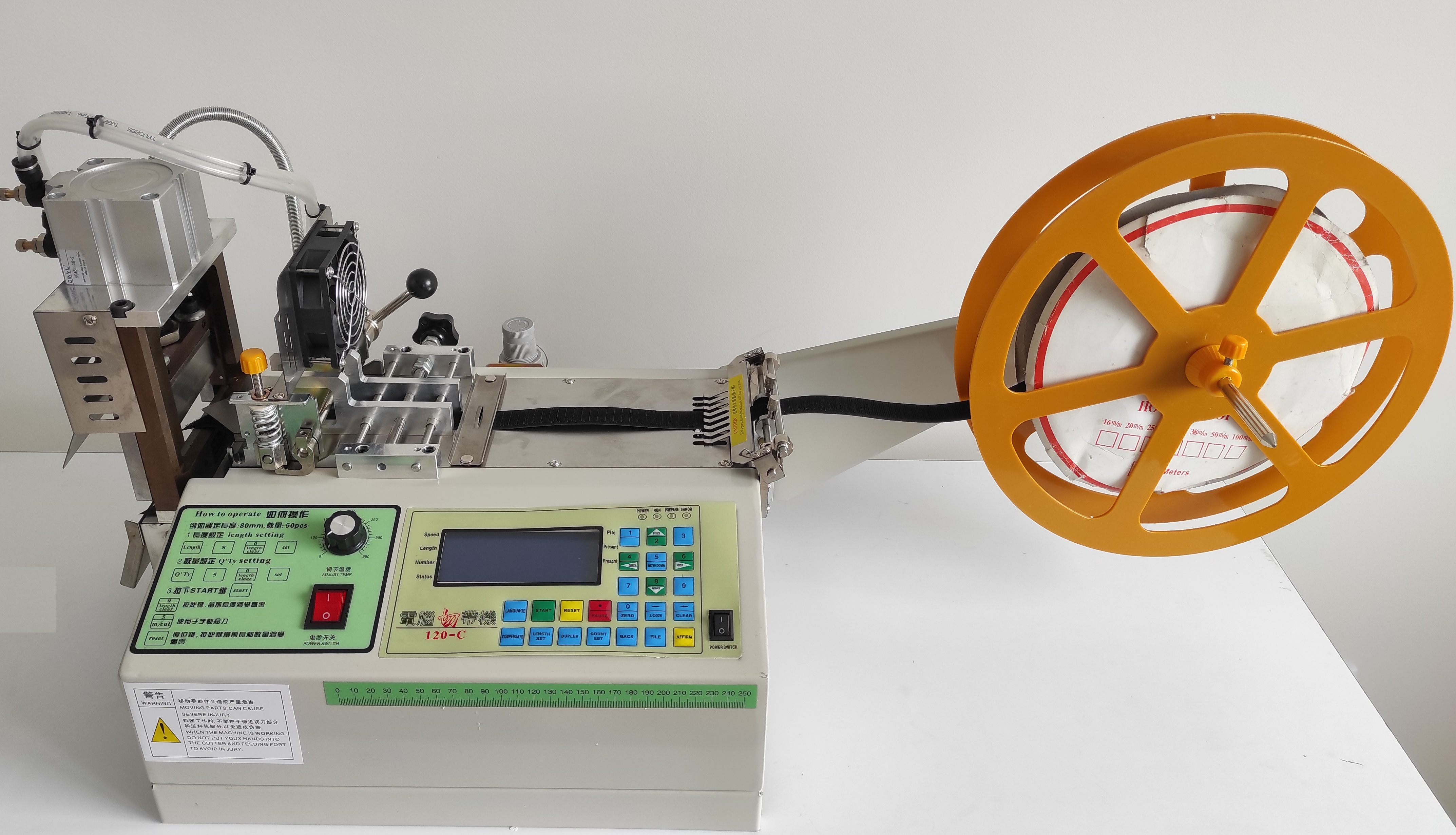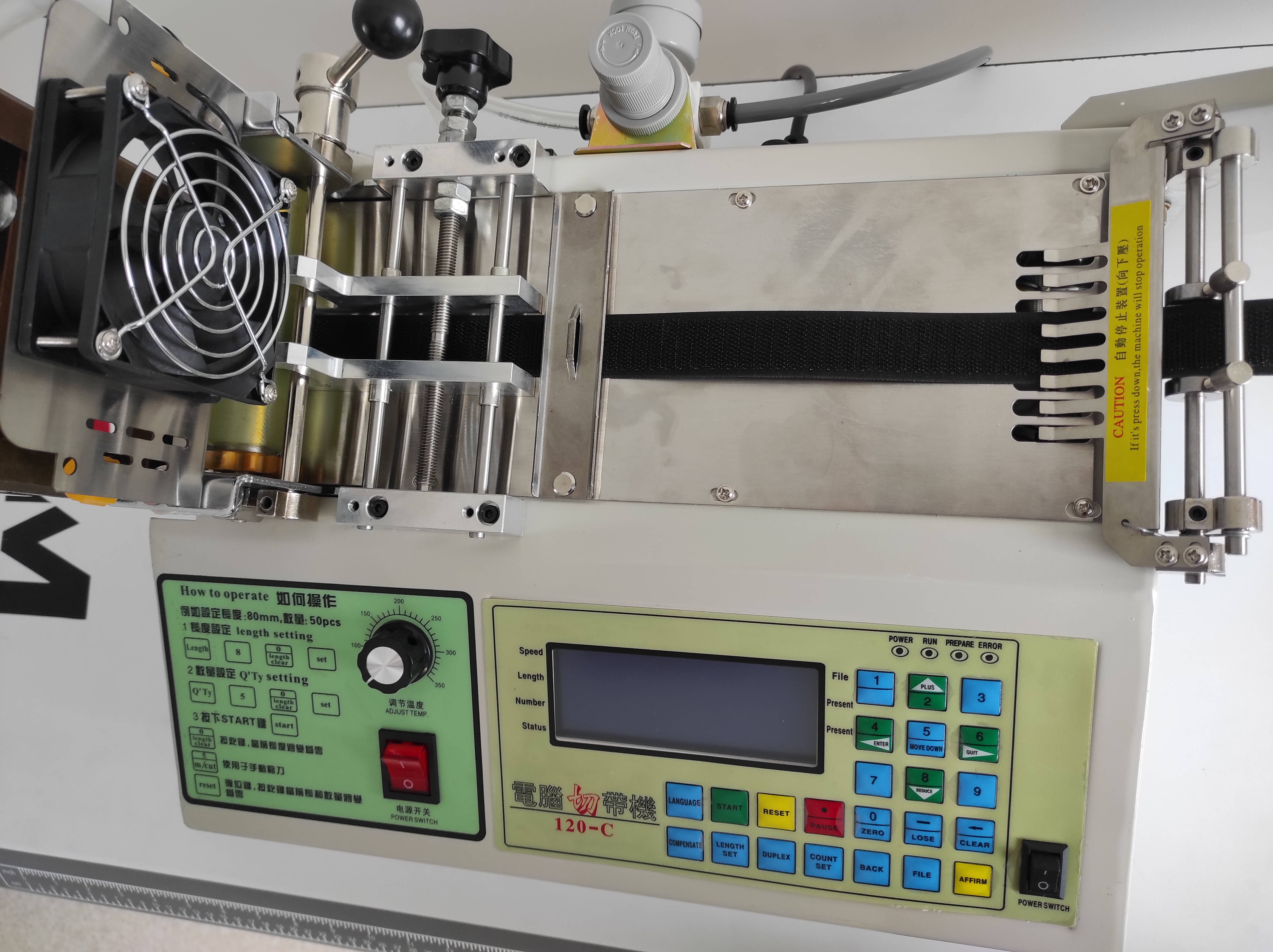 Промышленная машина для нарезки (холодный или гарячий нож) максимальная ширина реза 45 мм отлично подходит для нарезки: ткани ленты, ткани ремней, пластиковая молния, обивная бейка, липучки и много другого.