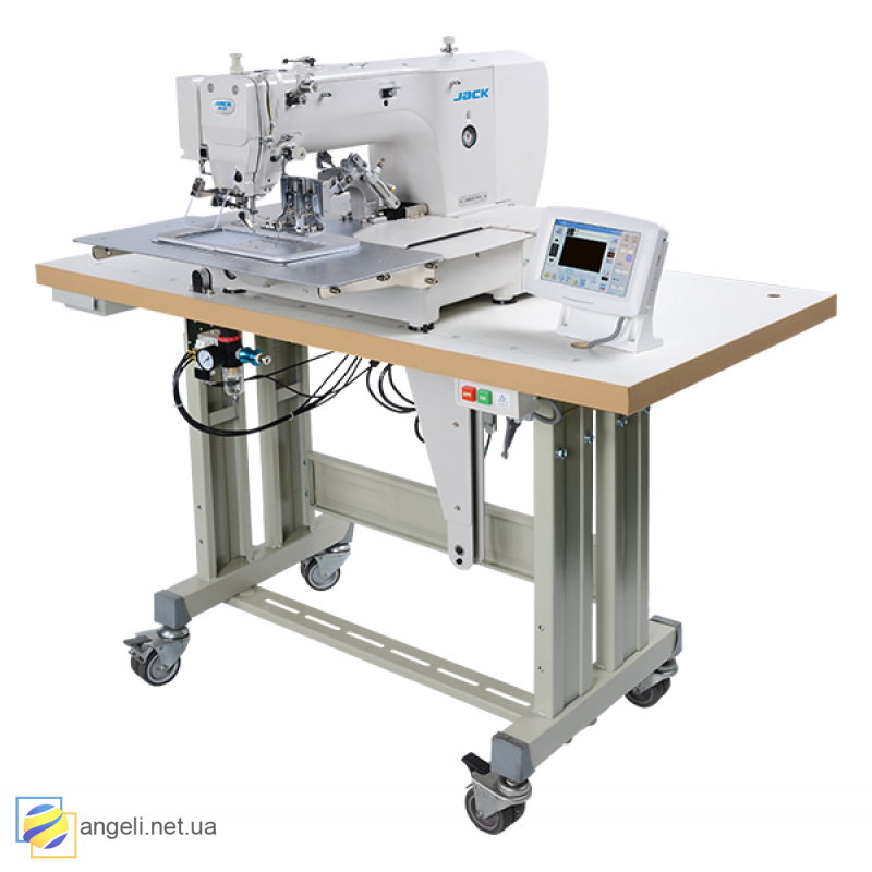 Автоматическая промышленная 1-игольная машина-автомат челночного стежка с программируемым циклом шитья для настрачивания деталей по контуру с площадью пошива 220мм × 100мм. Оборудована высокоточной механикой, пневматическим приводом и компьютерным управлением. Легкость управления обеспечивается возможностью ввода данных с сенсорного дисплея. Машина оснащена портом USB для переноса образцов отстрочки с внешнего носителя, а также системами автоматической обрезки нити, нитеотводчика и подъема лапки. Имеет большой экран с высоким разрешением, а также англоязычный интерфейс, на котором может быть задействован полностью сенсорный режим управления. Модель может использоваться при пошиве изделий из тяжелых материалов и кожи: кожаной обуви, сумок, джинсовых изделий, спорттоваров и другого специализированного шитья. Применяется для шитья карманов джинс, аппликаций на дамских сумочках, стачивания деталей, декоративной обработки карманов и т. п. Машина обладает дополнительными полезными функциями, такими как автоподача, автошитье, авто-подбор с помощью пневматики и продвинутыми технологиями электронного управления.