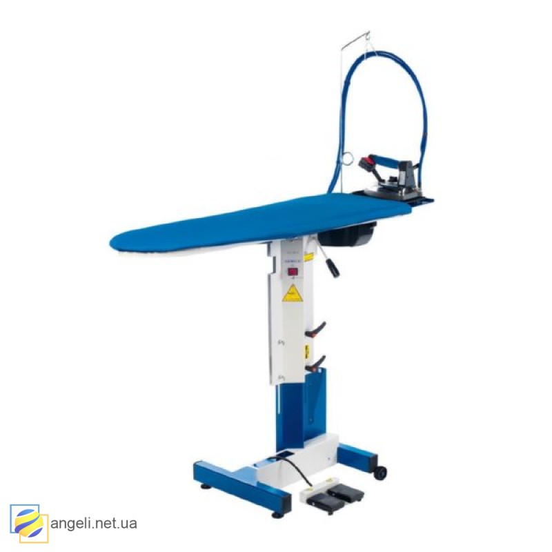 PRIMULA TV 3811 S+B - промислова прасувальна дошка з нагріванням, відсмоктуванням, піддувкою і регулюванням по висоті.
