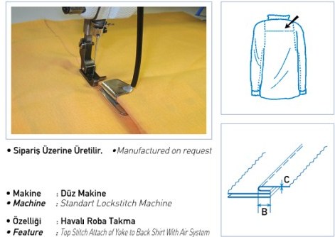 Предназначено для обработки легких тканей на машине челночного стежка.