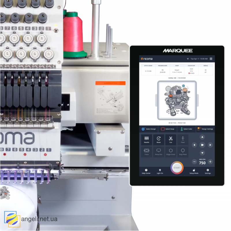 Двоголова вишивальна машина з новітнім 10,1" сенсорним блоком керування RICOMA MT-1502 TC-10S з серії Ricoma Marquee. Машини серії Ricoma Marquee мають розширену зону вишивки (верхнє розміщення пантографа), і найвужчу рукавну платформу, і через це ідеально підходять для вишивки на обємних речах і дуже малих виробах. Найкраще пристосовані для вишивки у важкодоступних місцях, на нвплічниках, шкарпетках, чохлах, кішенях, рукавах і штанках і багато іншого.