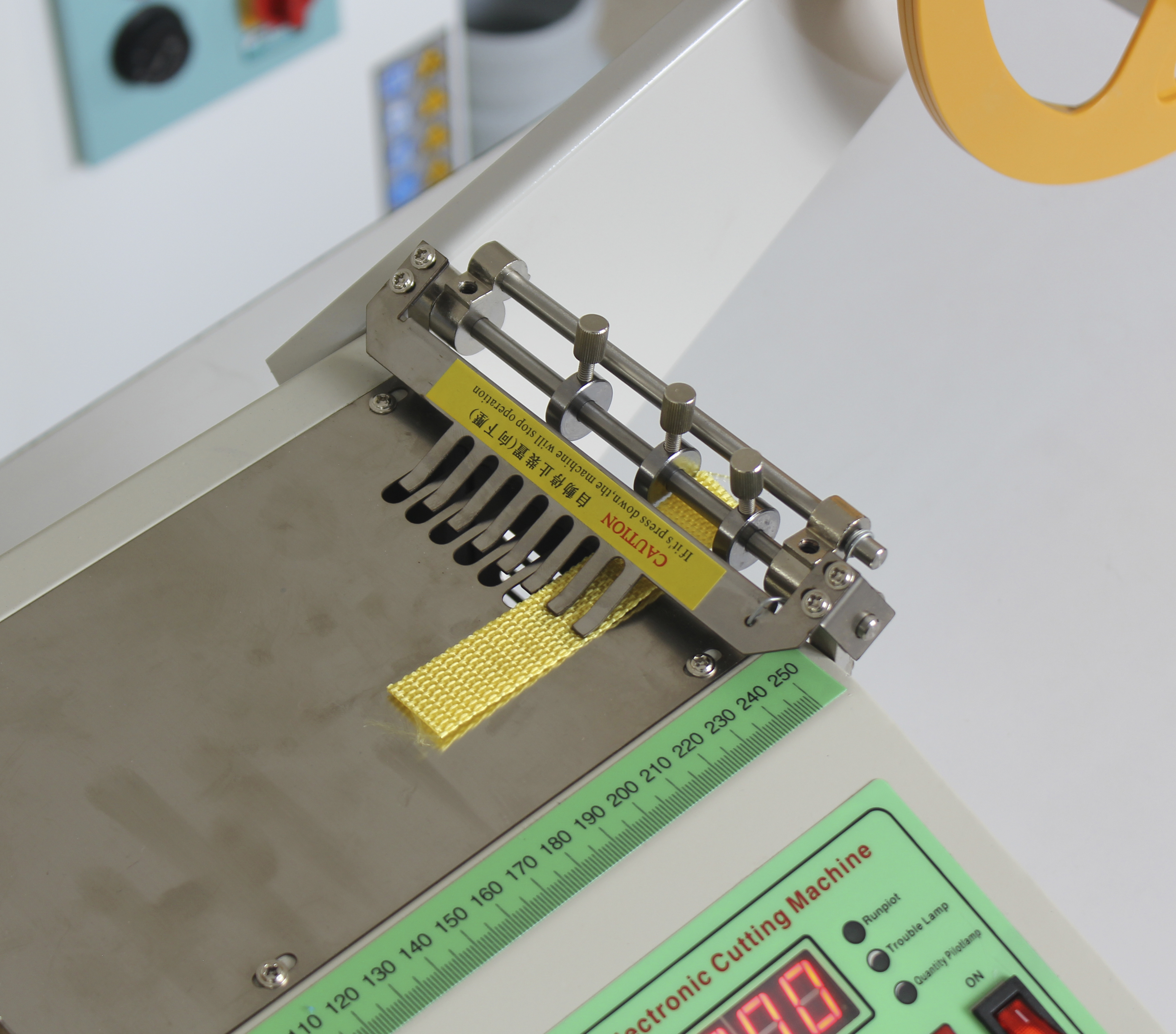 Автоматична машина для нарізання тасьми оснащена 95-міліметровим ріжучим лезом з можливістю терморегуляції. Нагрівання леза дає можливість оплавляти край нарізаної стрічки, що в свою чергу, усуває проблем "розсипання" матеріалу заготовок при подальшому їх використанні та роботі з ними.