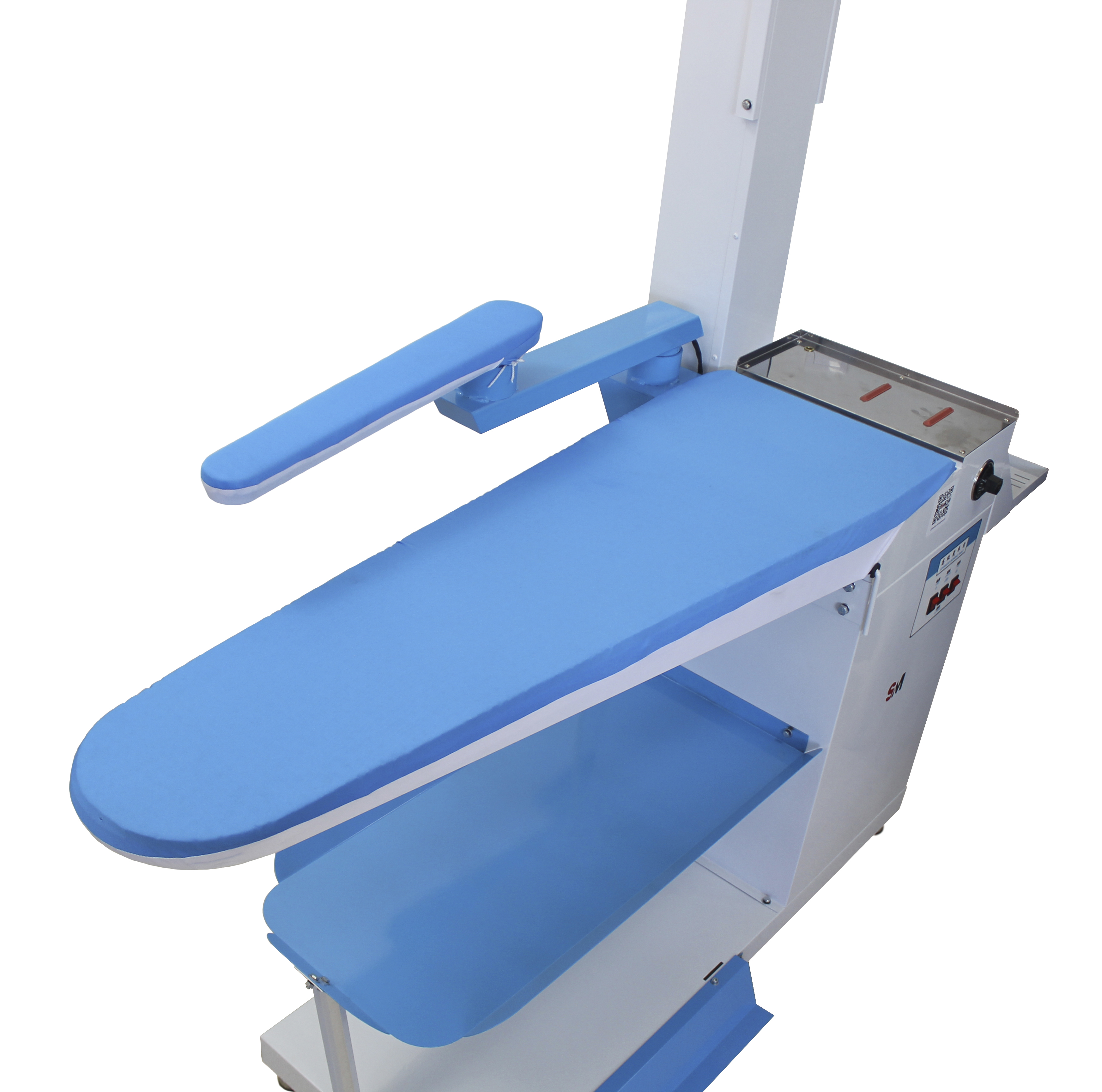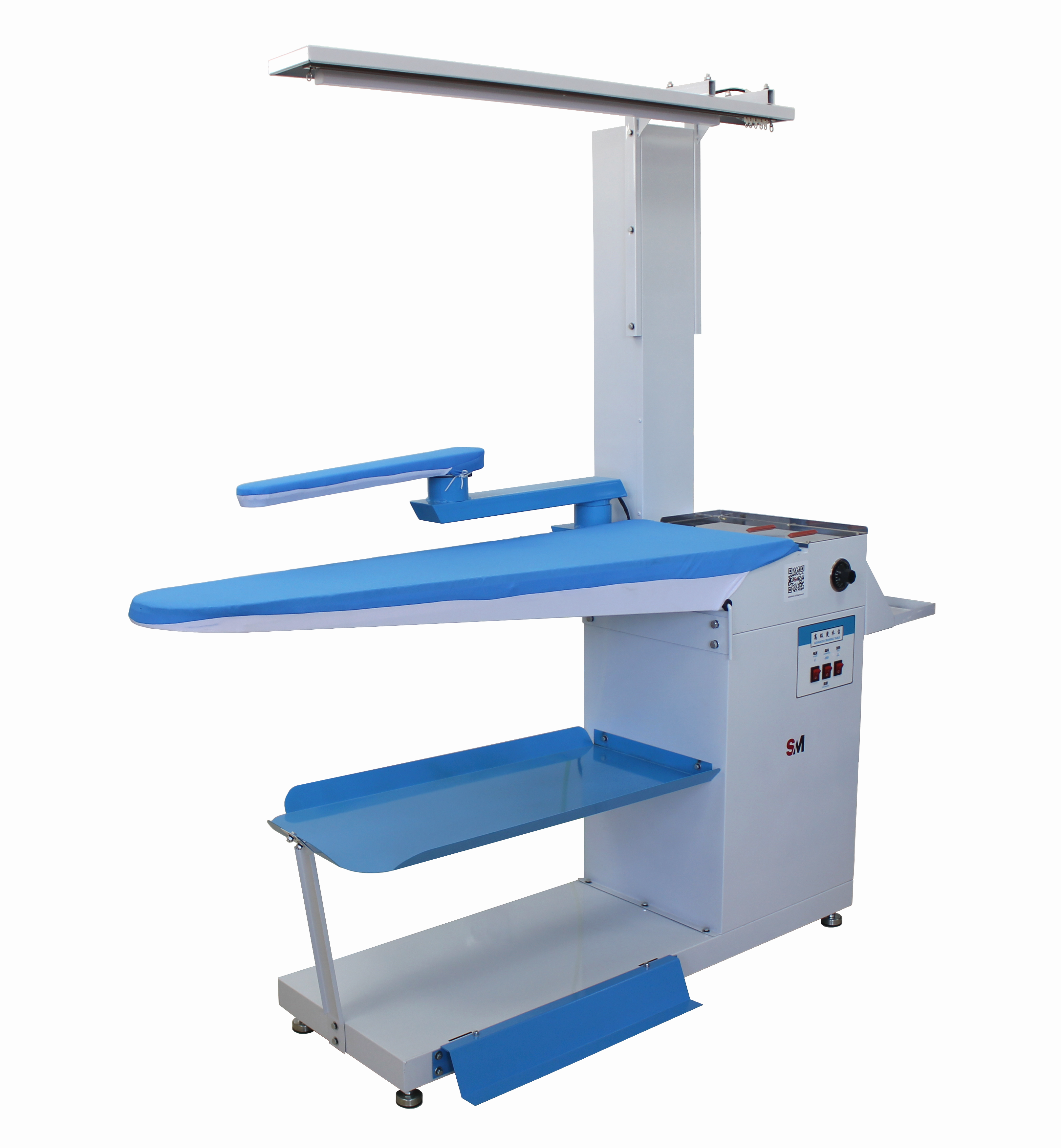 Промисловий консольний прасувальний стіл SM ST-Q3 – це професійне обладнання, призначене для якісного прасування швейних виробів та їхніх деталей. Він широко використовується на швейних підприємствах, де виготовляють футболки, кофти, сукні, спідниці та інші вироби. Завдяки консольній конструкції, одяг можна легко надівати на стіл для зручного прасування.