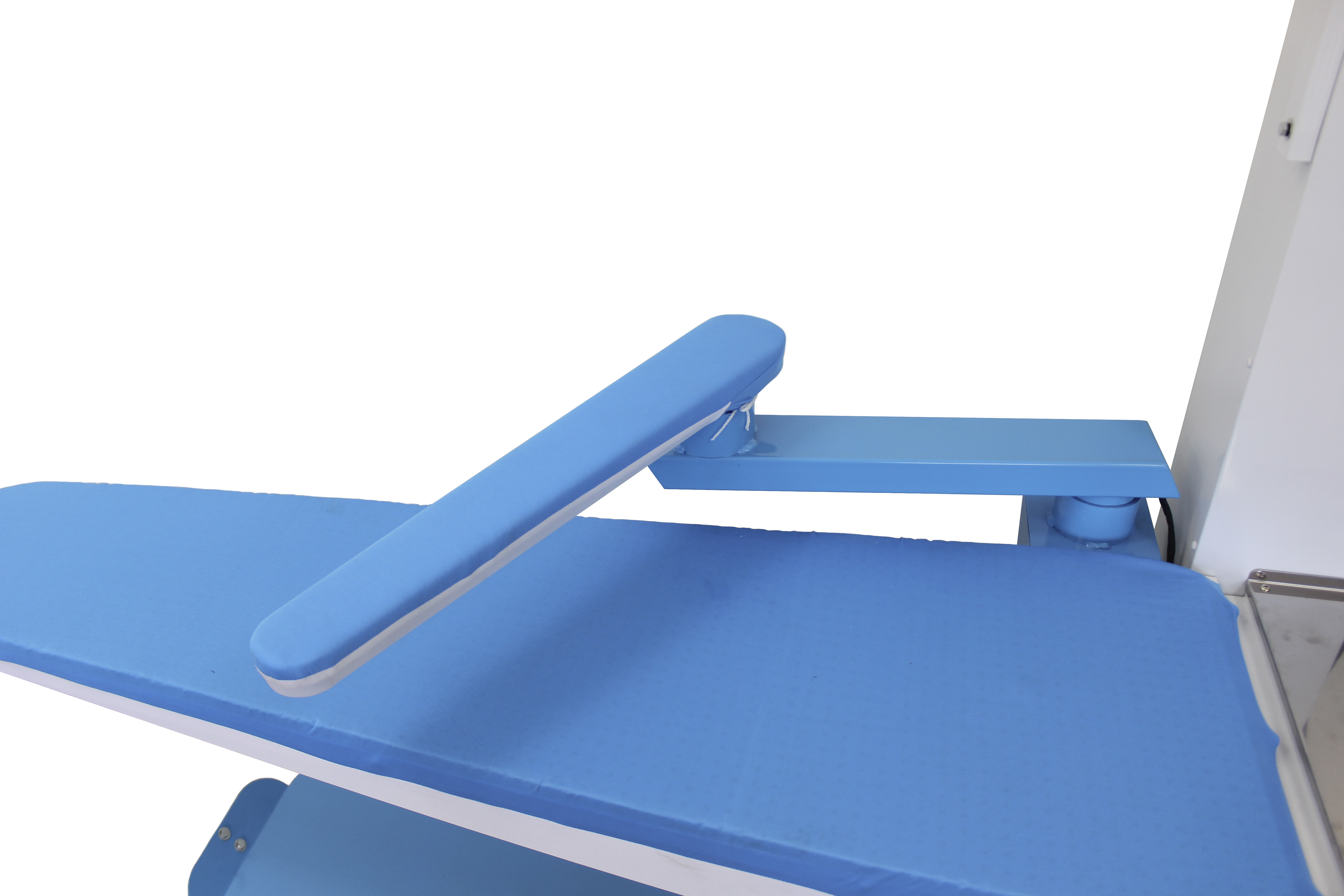 Прасувальний стіл оснащений поворотним рукавом розміром 14×60×8,5 см із можливістю регулювання кута повороту. Рукав має функцію відсмоктування повітря, що забезпечує ефективну фіксацію виробів під час прасування. Також, рукав оснащений нагрівальним елементом потужністю 360 W.