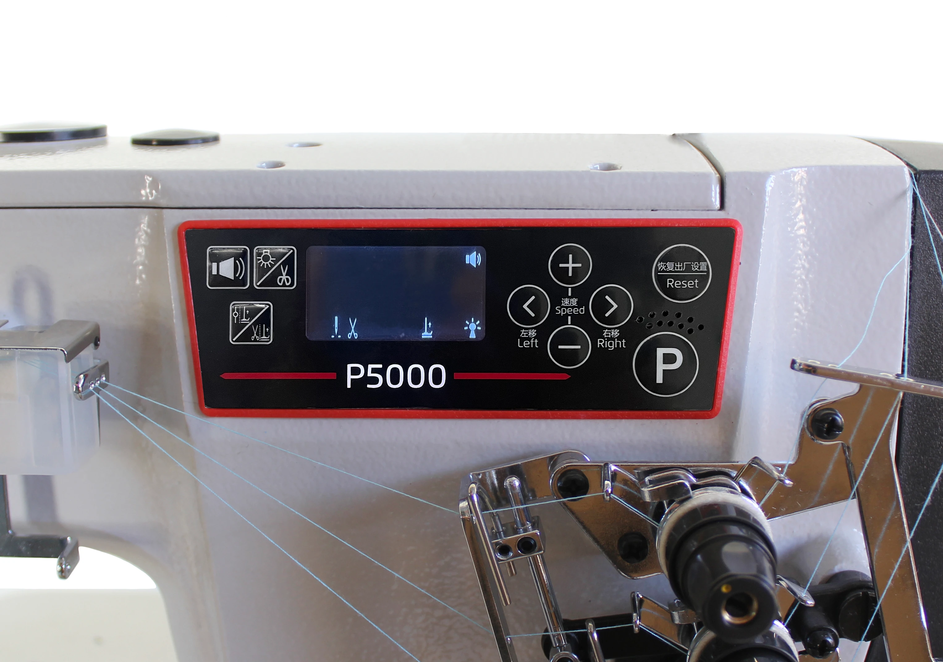 В промисловій плоскошовній машині встановлено електронну панель керування. На даній панелі розташовані клавіші керування основними функціями які необхідні для роботи швеї. Також, кожна функція має піктограмний дубляж на екрані, що полегшує визначення чи активована вона.