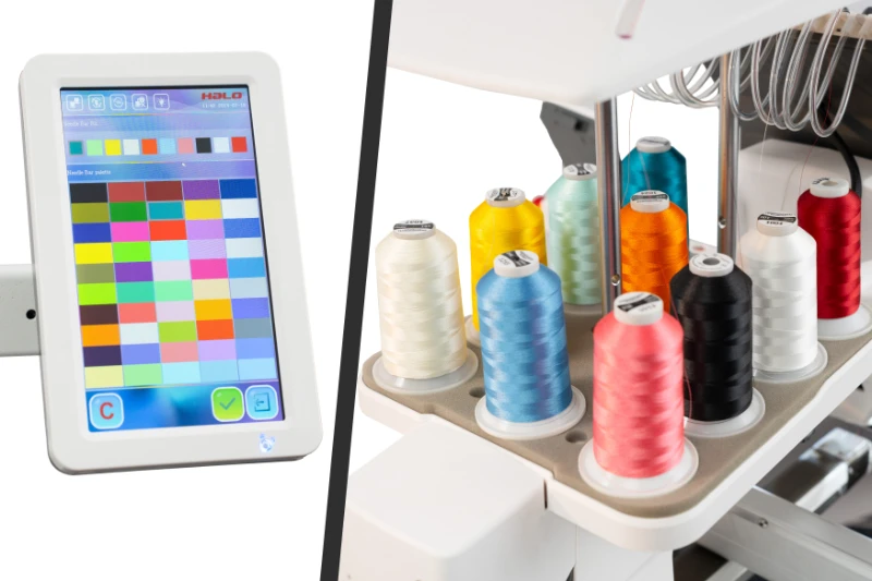 Обриви нитки час від часу неминучі, проте система Halo оперативно їх визначає та автоматично повертає процес вишивки до 20 стібків назад перед повторним заправленням нитки, що забезпечує плавне та точне продовження вишивання без втрати якості.