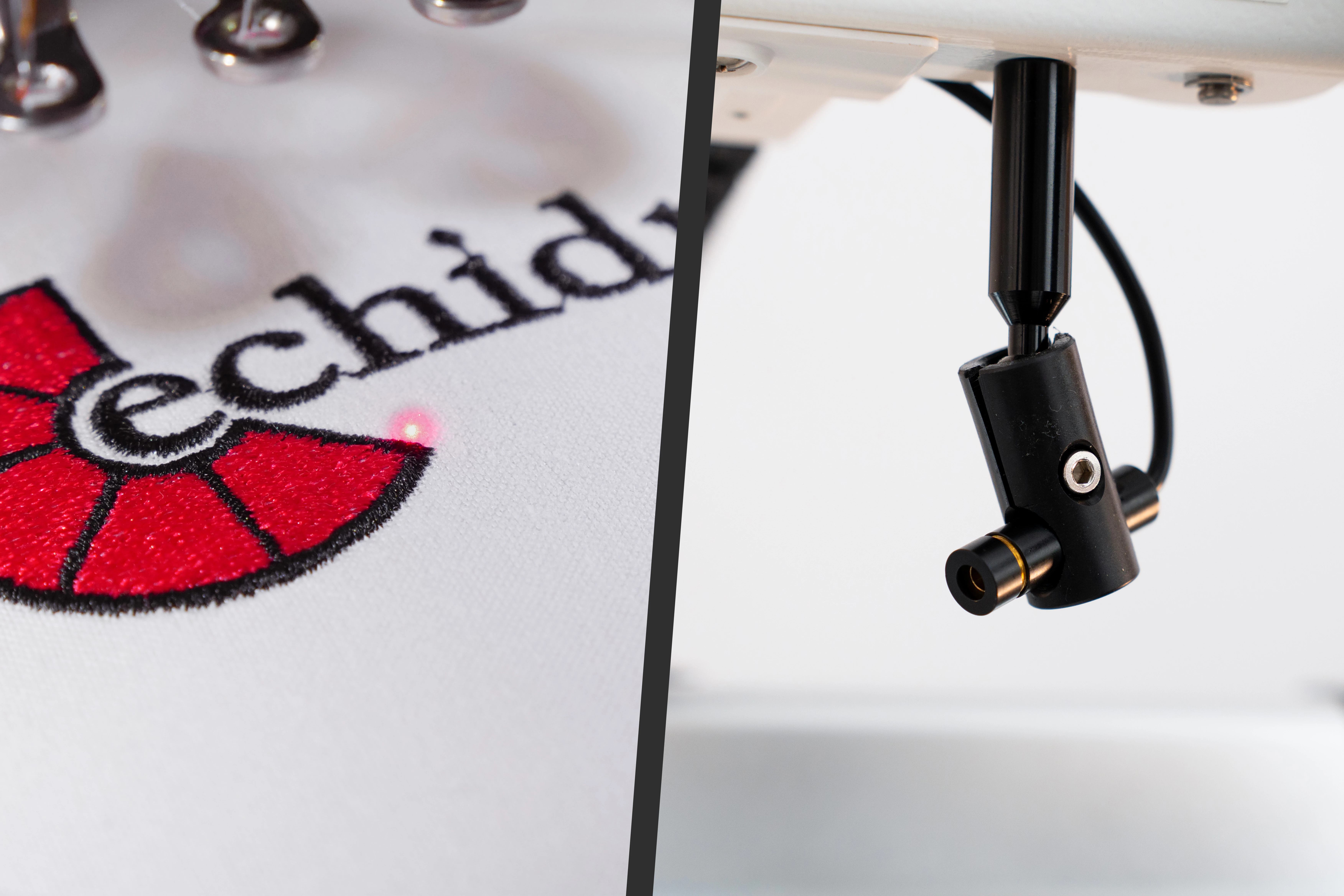 Вбудований LED-лазерний указівник точно показує точку входу голки в тканину, що значно спрощує розміщення дизайну та обведення контурів при вишиванні.