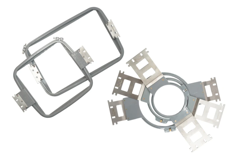 FORTEVER Halo-X є універсальною вишивальною машиною, що легко адаптується під різні типи виробів завдяки можливості доукомплектації спеціалізованою оснасткою. Залежно від виробничих завдань машина може оснащуватися кепочними комплектами для вишивки на головних уборах, п’яльцями для вишивки на шкарпетках і взутті, п’яльцями для плоских виробів, а також кишеньковими п’яльцями для точного нанесення вишивки на готових виробах. Для роботи з великими або протяжними дизайнами передбачене використання бордюрних рам, що робить Halo-X ефективним рішенням як для дрібносерійного, так і для потокового виробництва.