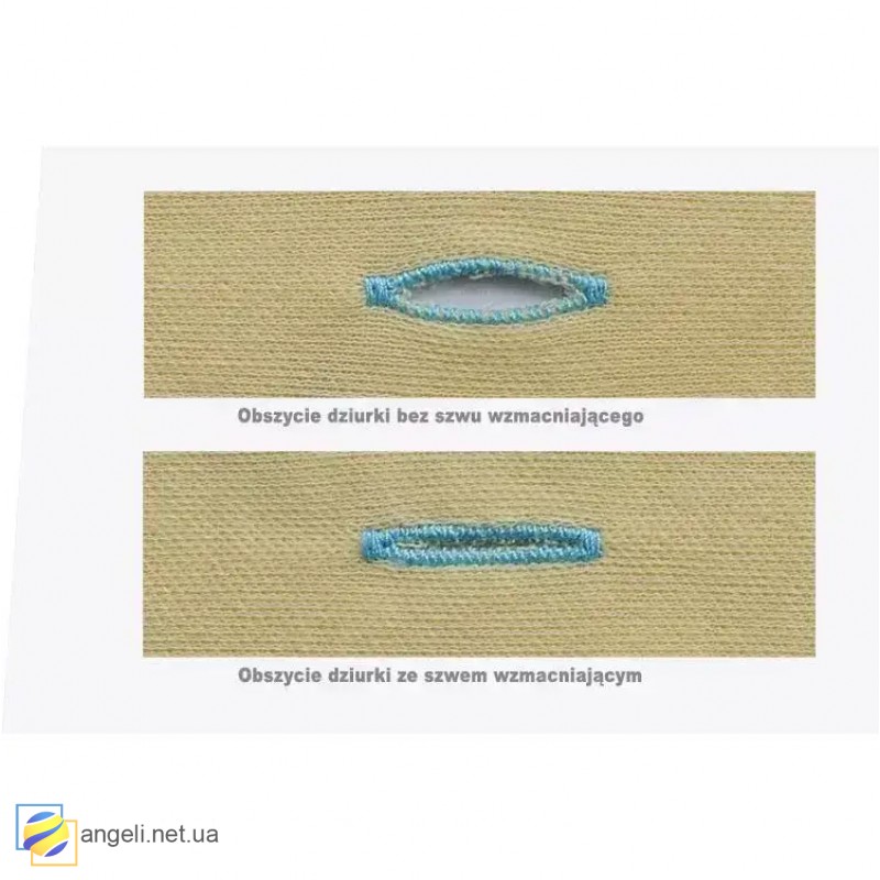 Можна додатково укріпити петлю. Це особливо зручно під час роботи з еластичними тканинами. Мультиобрізка дозволяє робити довгі петлі без зміни ножа.