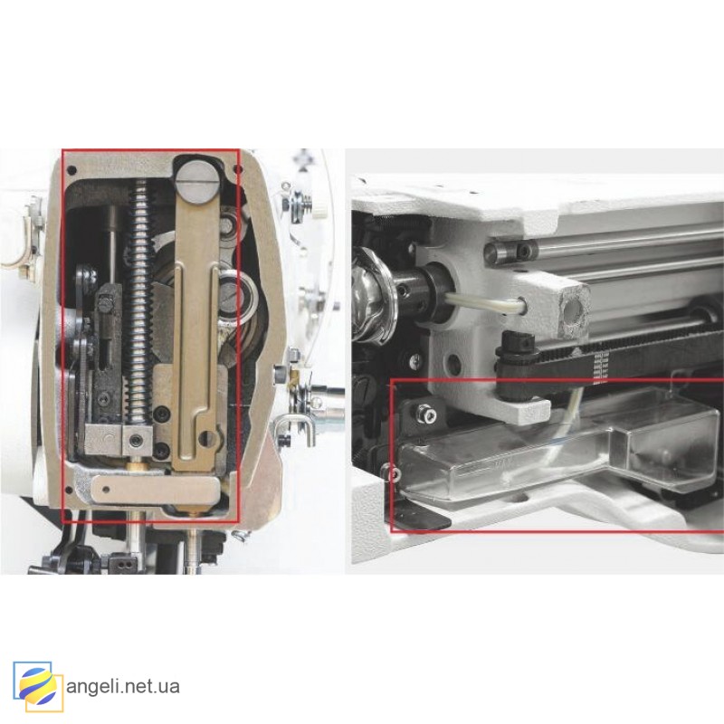 - Петельна машина оснащена такими автоматичними функціями, як обрізка нитки і підйом лапки.